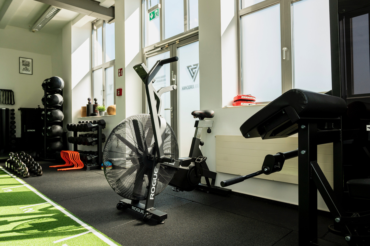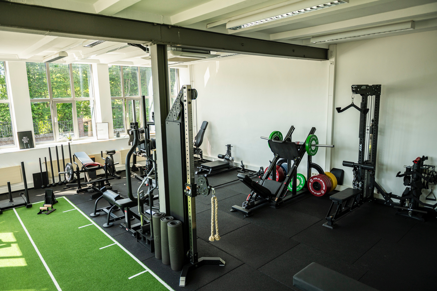 Ein großes (Sauna-)Handtuch, saubere Sportschuhe, bequeme Kleidung (Du kannst auch schon in Sportsachen kommen)